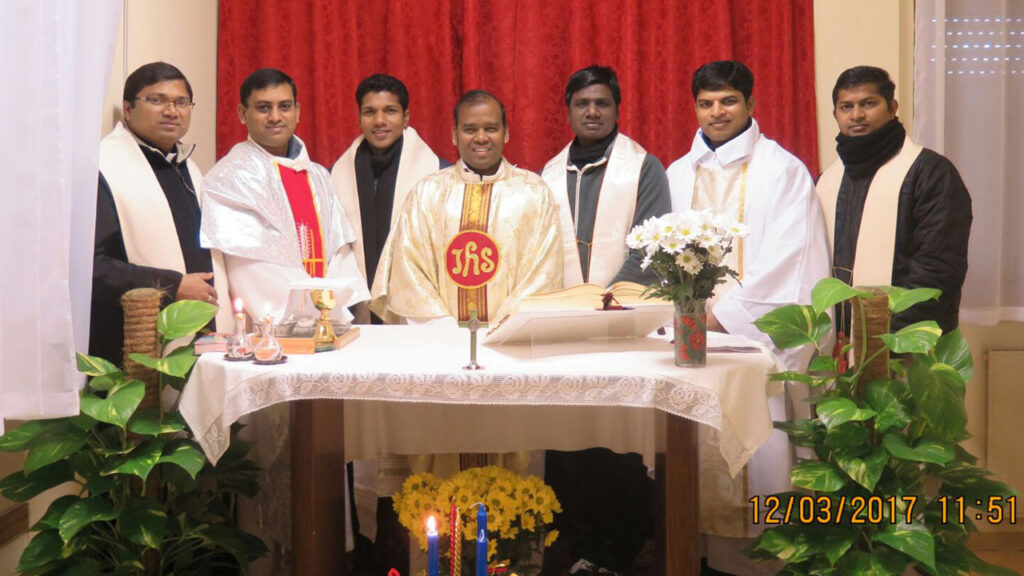 Il suo sogno si è avverato e la grazia di Dio ha bussato alla nostra porta per mezzo di P. Antonio Giurra, il superior generale della Famiglia dei Discepoli, che ci ha ospitato nella sua casa dove ora dimoriamo per iniziare una vita communitaria sacerdotale. Il nostro vescovo Gino Reali ci ha dato il permesso di aprire la nostra comunità nella sua diocesi di Porto Santa Rufina. Lo ricordiamo sempre nelle nostre preghiere e lo ringraziamo con gratitudine. Abbiamo inaugurato la nostra prima e nuova comunità a Roma il 23 settembre 2014 composta da tre sacerdoti: P. Jesu Doss, P. David e P. Rabin.